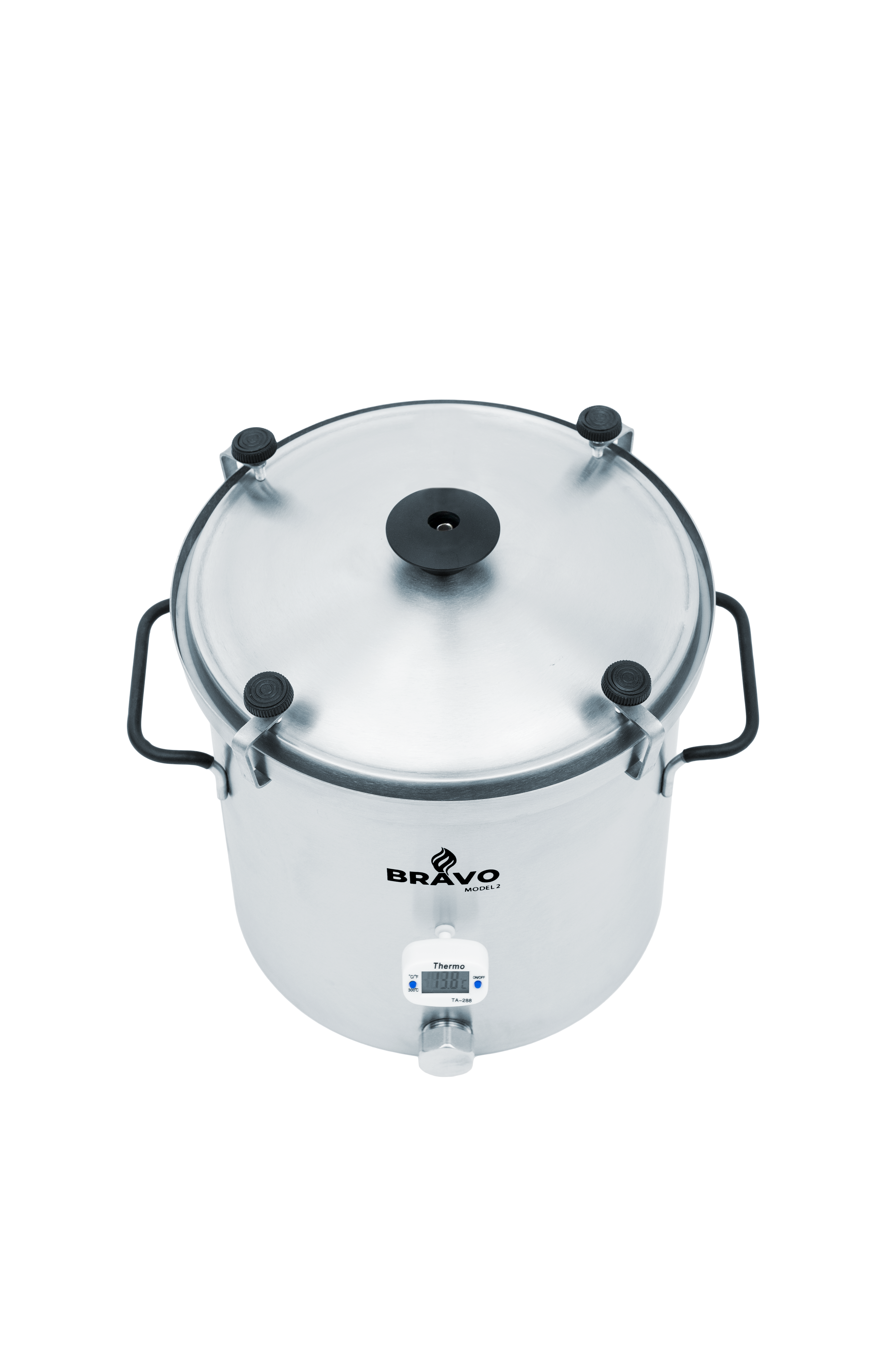 Bravo 2 — это универсальная система 2 в 1. При холодном копчении Bravo 2 выступает в роли коптильной камеры. Она соединяется с дымогенератором шлангом, крепящимся на штуцере внизу бака. При горячем копчении в отверстие штуцера ставится заглушка.
